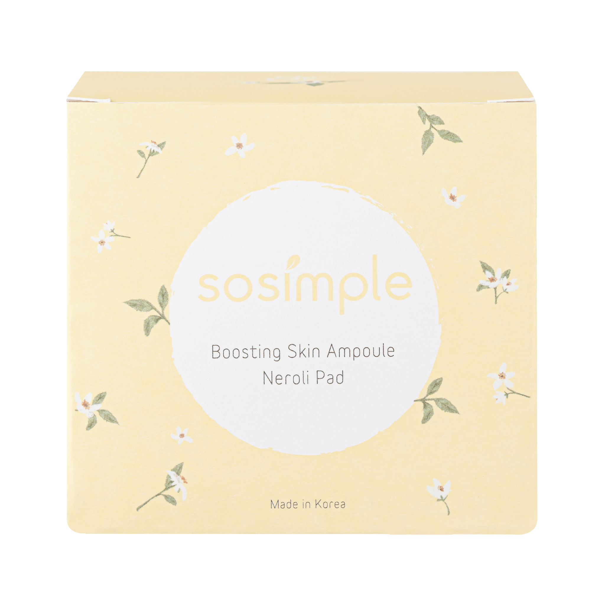 Si sosimple Boosting Skin Ampoule Neroli Pad còn là ampoule dưỡng ẩm với chiết xuất hoa bưởi đặc trưng cùng với oải hương, mía và nha đam.
